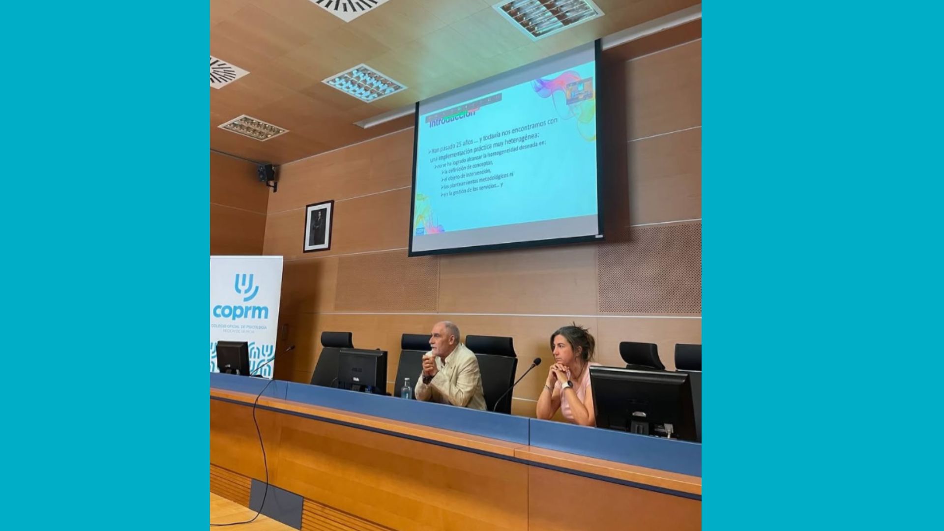 En la Biblioteca Regional de Murcia el día 19/05/2023 organizado por el Colegio Oficial de Psicología de la Región de Murcia.