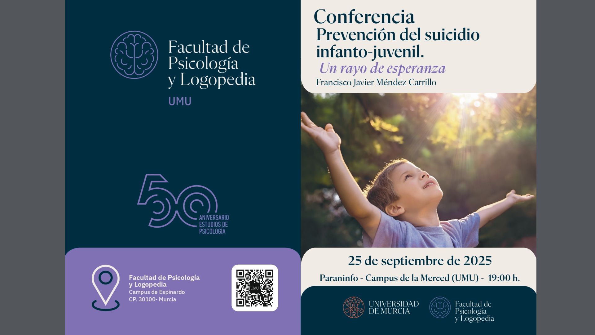 Prevención del Suicidio infanto-juvenil. El día 25 de Septiembre de 2025 a las 19:00h en el Paraninfo - Campus de la Merced (UMU)