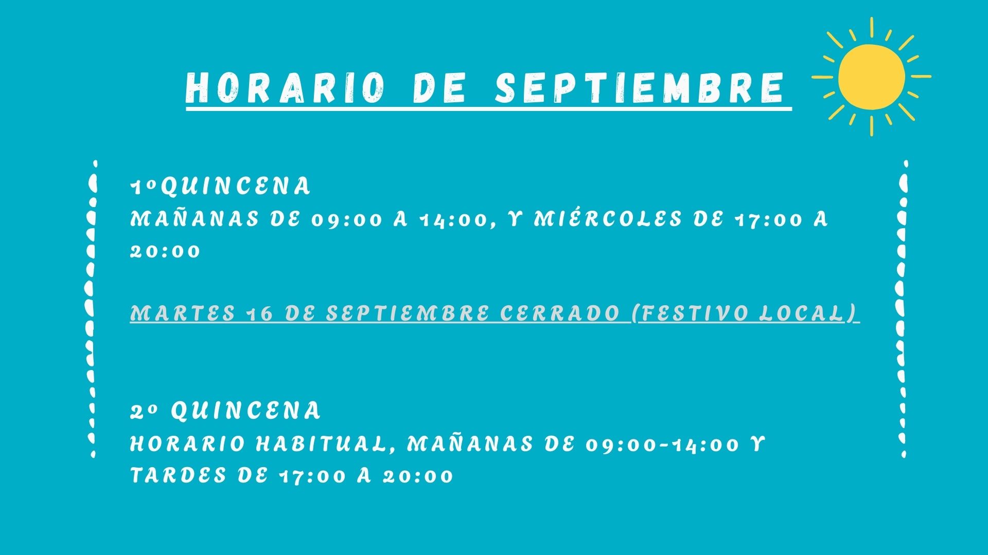 Horario especial de vacaciones. Abierto de lunes a viernes de 09:00 A 14:00.