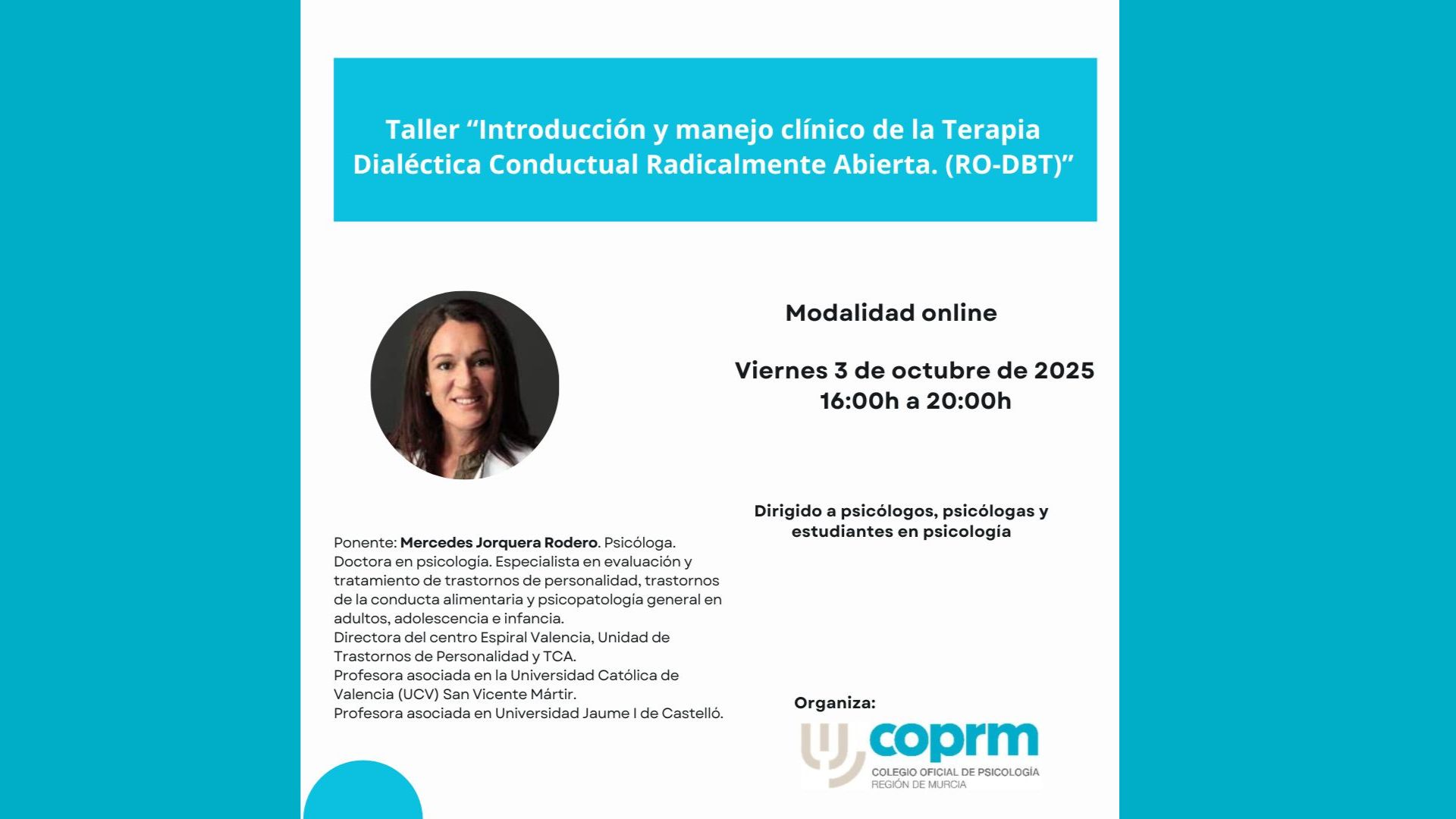 Taller Introducción y manejo clínico de la Terapia Dialéctica Conductual Radicalmente Abierta (RO-DB) 3 de octubre, de 16:00 a 20:00h