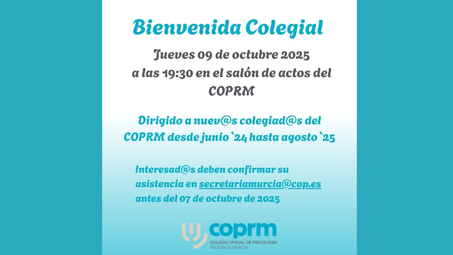 Bienvenida Colegial 2025. Jueves, 9 de Octubre a las 19:30h en la sede del COPRM