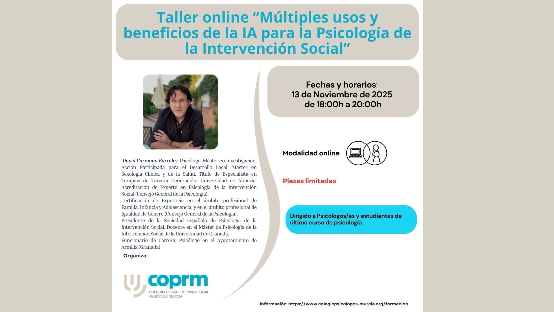 Taller Online Múltiples usos y beneficios de la IA para la Psicología de la Intervención Social
