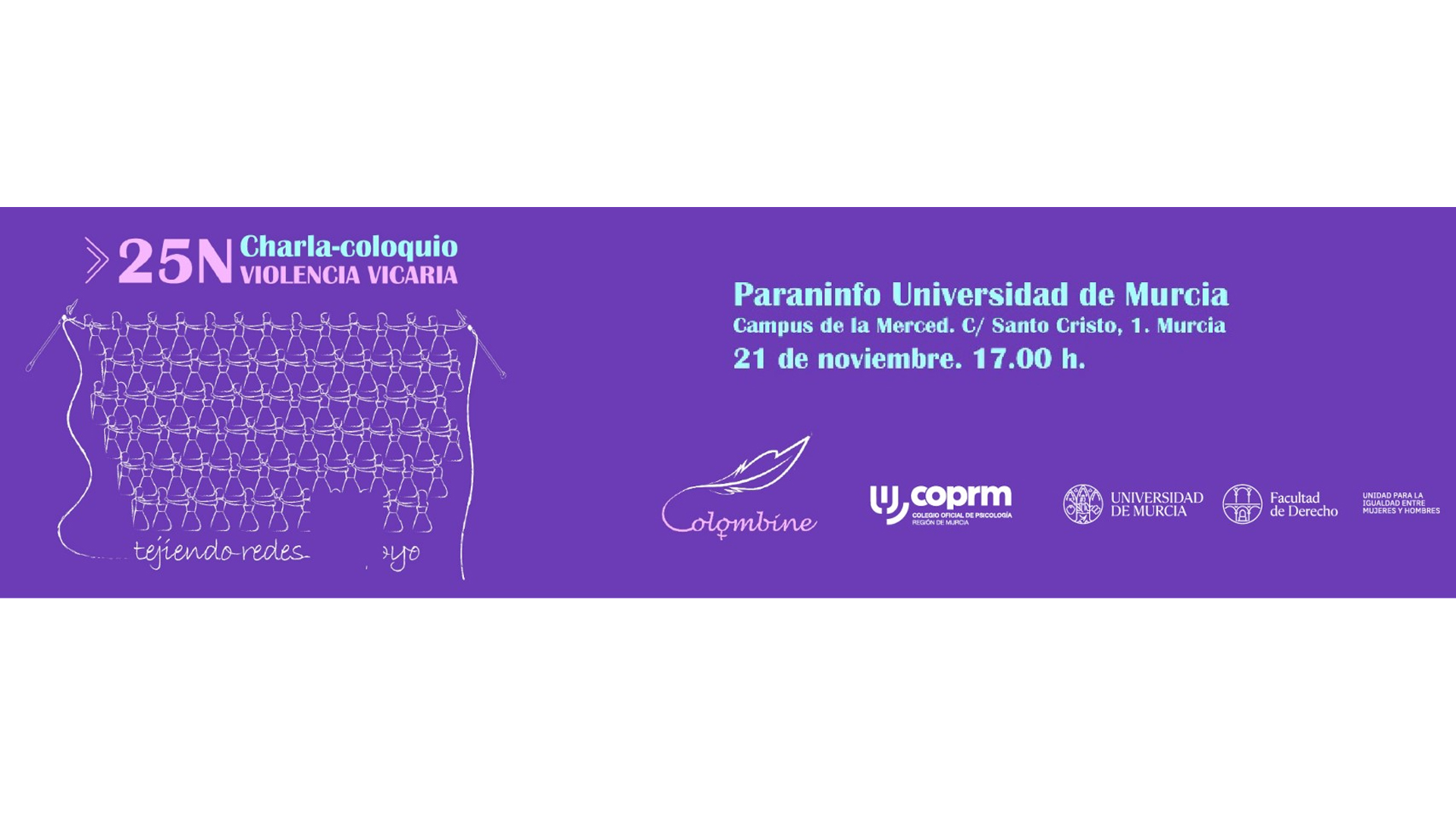 Ángeles Miñarro, del Grupo de Trabajo de Igualdad y Género del COPRM y experta en víctimas de delitos violentos y en género e igualdad, va a intervenir en una charla abierta a la participación de la ciudadanía para abordar la violencia vicaria como otra de las graves consecuencias de las agresiones machistas. Con motivo del 25N, Día contra la Violencia de Género, la Plataforma Colombine de Mujeres Periodistas Feministas de la Región de Murcia, en colaboración con la Unidad para la Igualdad de Mujeres y Hombres de la Universidad de Murcia (UMU) y el Colegio Oficial de Psicología de la Región de Murcia (COPRM), organiza el viernes 21 de noviembre, a las 17.00 horas, en el Hemiciclo de la Facultad de Letras de la UMU. En el encuentro se profundizará en las repercusiones en salud mental, en las consecuencias legales y en el tratamiento informativo de este tipo de violencia machista.