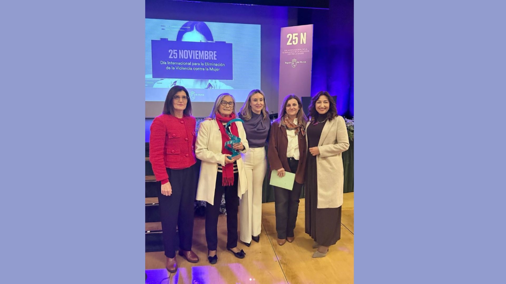 Elena Navío, vicedecana del Colegio Oficial de Psicología de la Región, ha asistido en nombre de dicha institución, al acto de entrega de las distinciones 25N de la Comunidad, con motivo del Día Internacional para la Eliminación de la Violencia contra la Mujer.