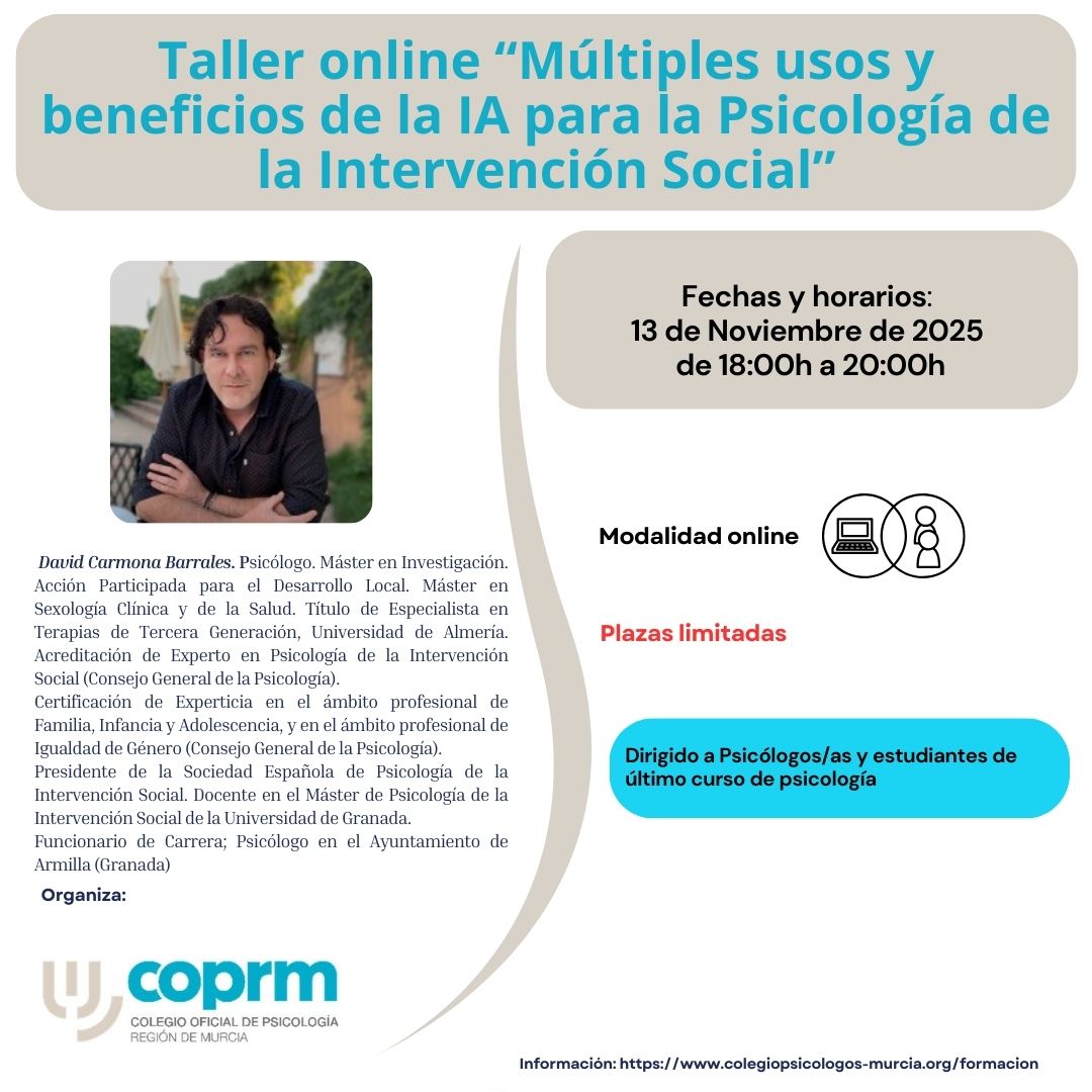 Taller Online Múltiples usos y beneficios de la IA para la Psicología de la Intervención Social