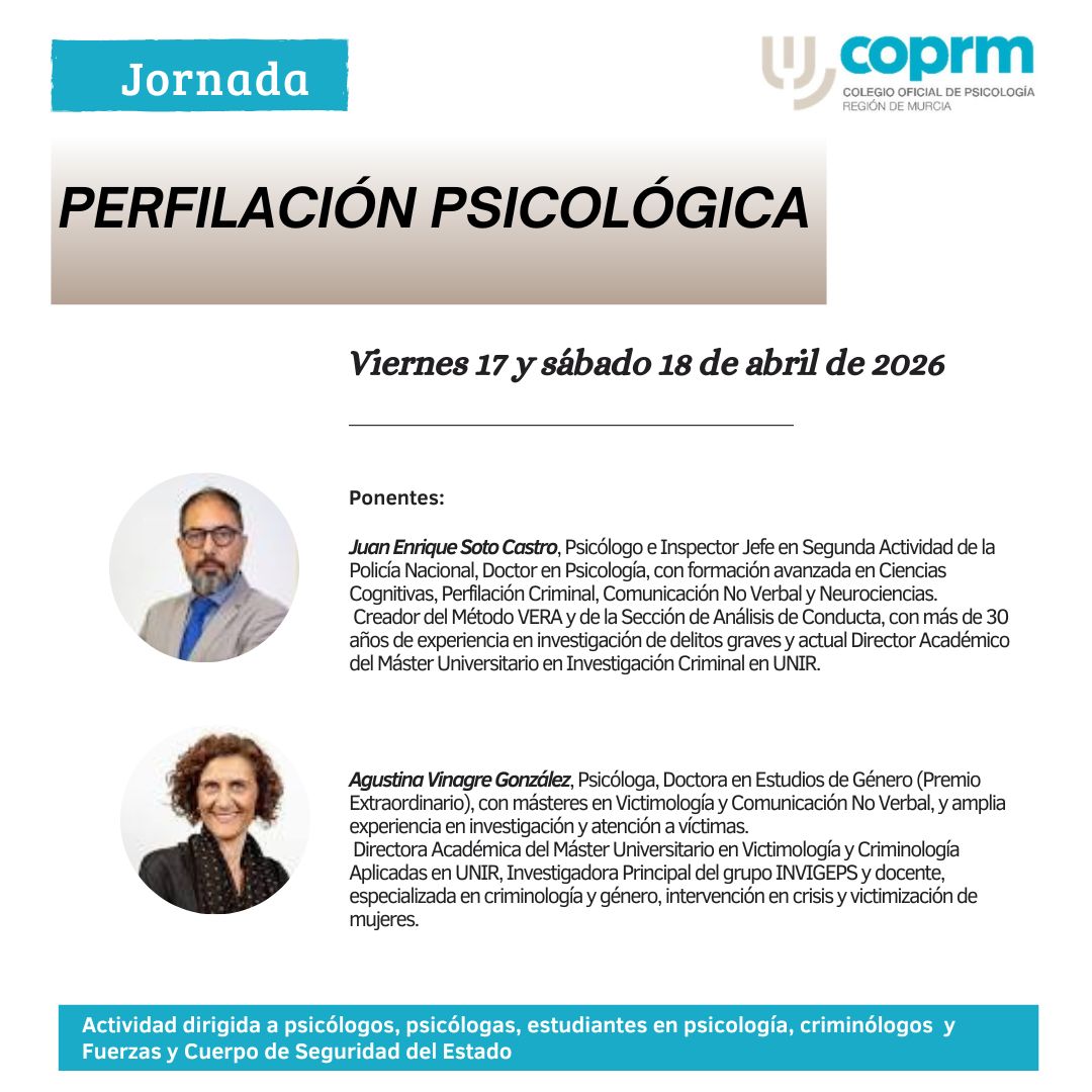 Ponentes: Juan Enrique Soto Castro, Psicólogo e Inspector Jefe en Segunda Actividad de la Policía Nacional, Doctor en Psicología, con formación avanzada en Ciencias Cognitivas, Perfilación Criminal, Comunicación No Verbal y Neurociencias.