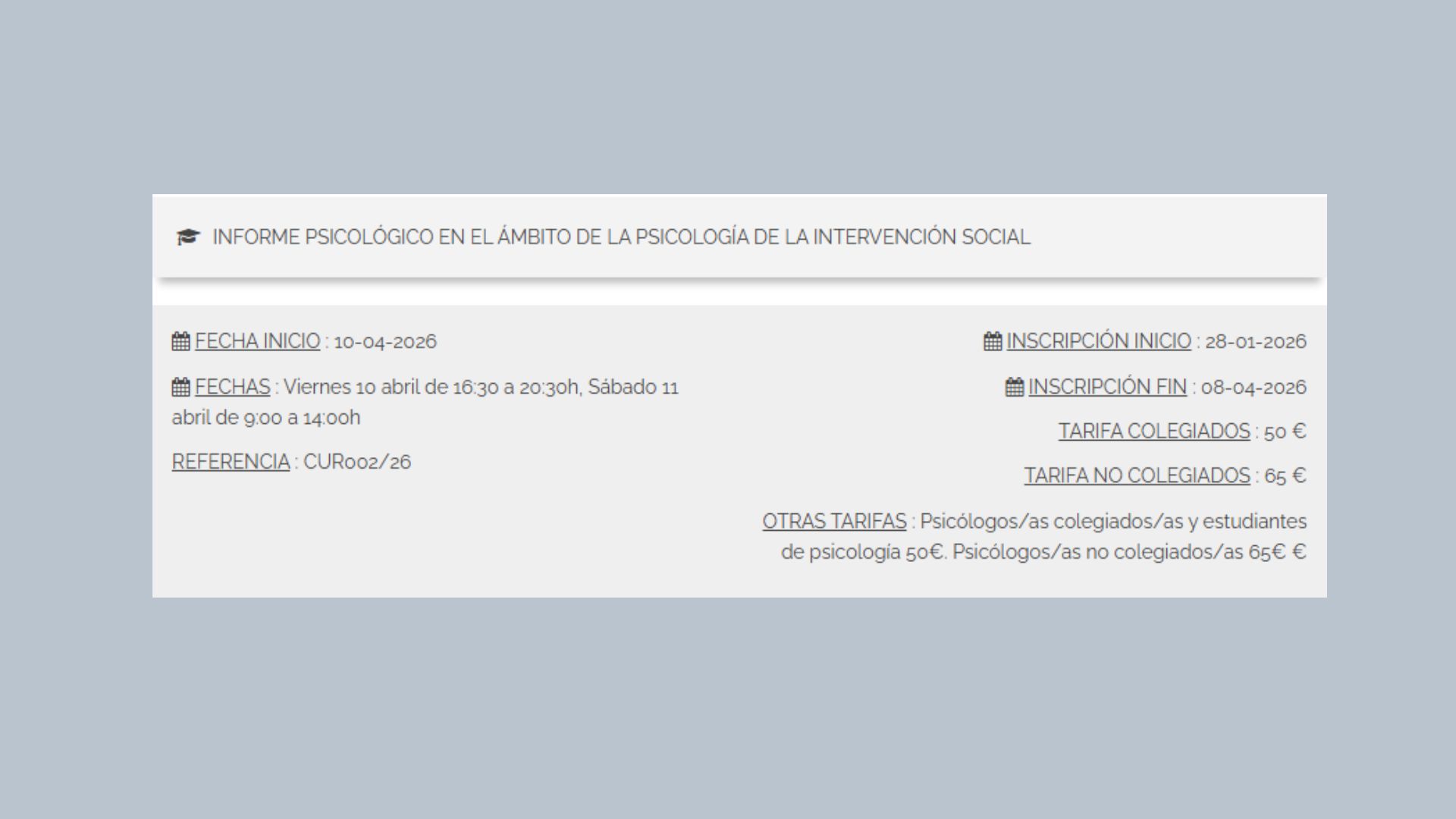 Inscripción: https://www.copsrioja.org/servicios/formacion_desc.php?id_forma=141&guid=187530